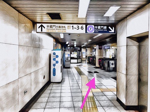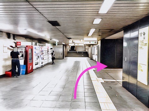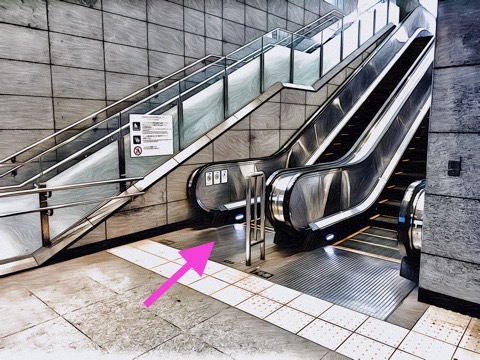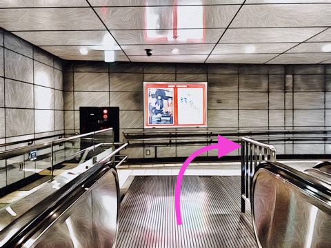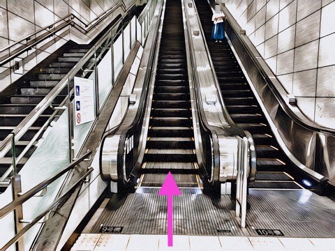 9号車3番扉(先頭から2両目)付近のエスカレーターで改札階へ