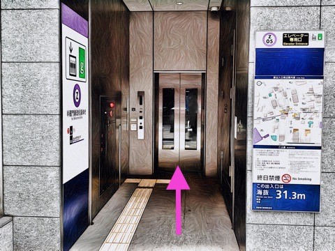 出入口6のエレベーターへ