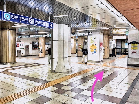 中野方面行きホーム(2号車4番扉/先頭から9両目)