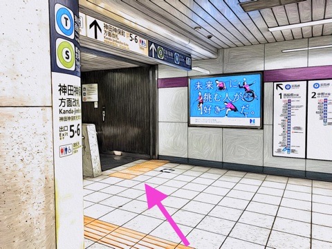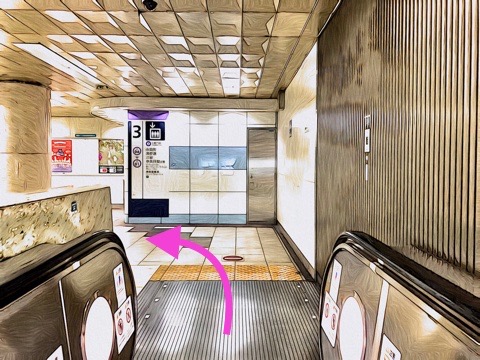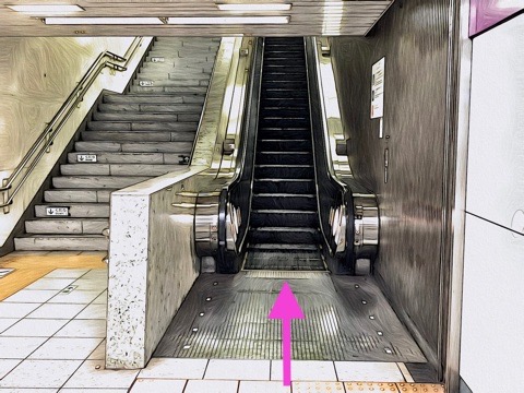 2号車1番扉(先頭から9両目)付近のエスカレーターへ