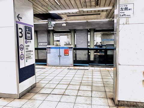 中野方面行きホーム(1号車4番扉/先頭から10両目)