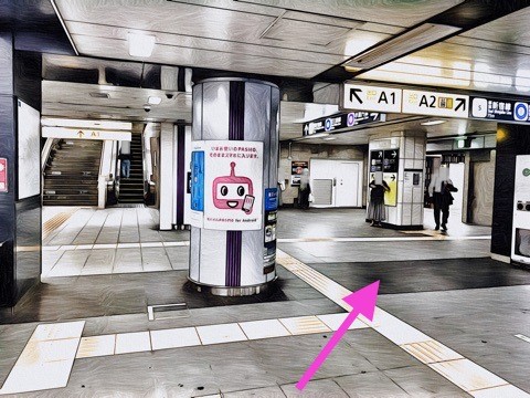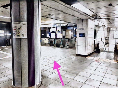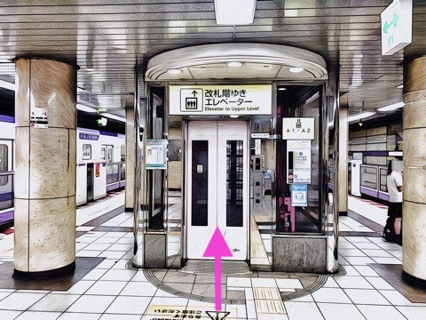 5号車3番扉(先頭から6両目)付近のエレベーターで改札階へ