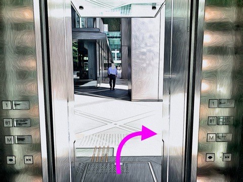 前方のエレベーターへ