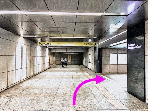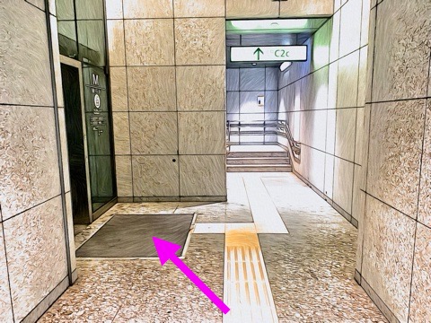 10号車2番扉(先頭から1両目)付近のエレベーターで上の階(B3F)へ