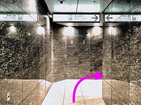 前方のエレベーターへ