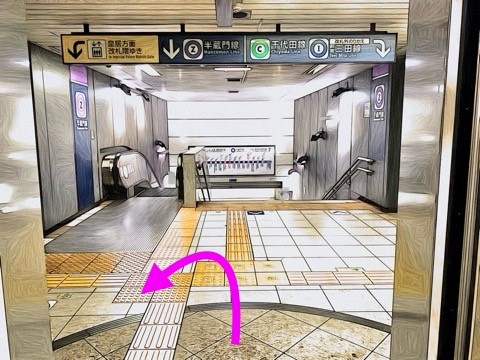 10号車2番扉(先頭から1両目)付近のエレベーターで上の階(B3F)へ