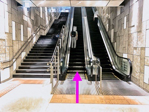 前方のエスカレーターへ