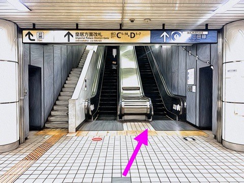 7号車1番扉(先頭から4両目)付近からエスカレーターへ