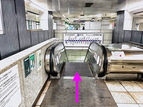 右にあるエスカレーターへ
