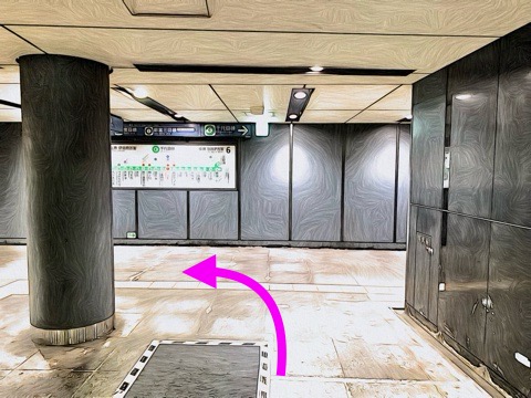 エスカレーターを降り前方へ