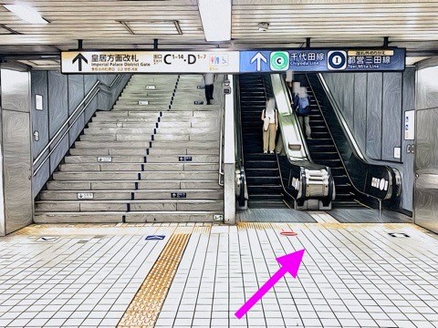 10号車4番扉(先頭から1両目)付近からエスカレーターへ