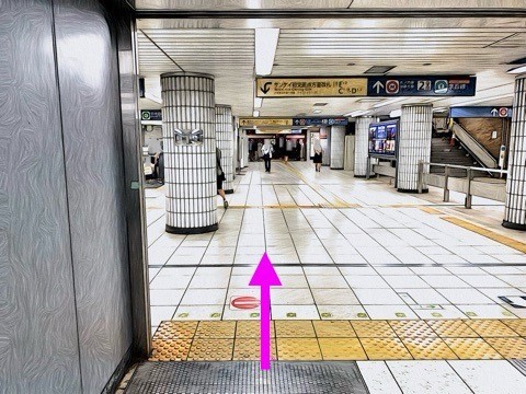 5号車3番扉(先頭から6両目)付近からエスカレーターへ