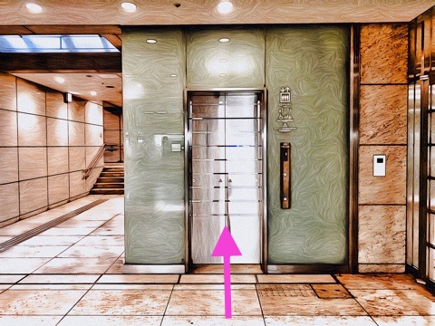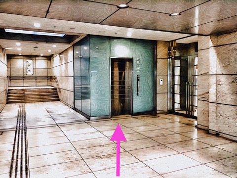 前方のエレベーターへ