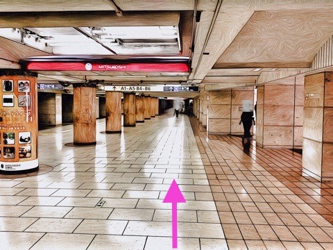 通路に沿って左へ