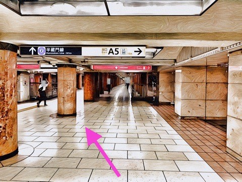 出入口A7のエレベーターへ