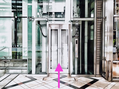 前方のエレベーターへ