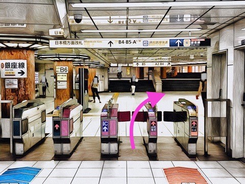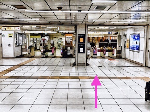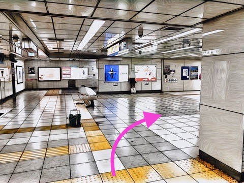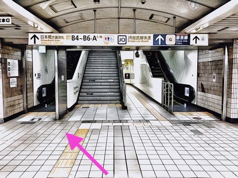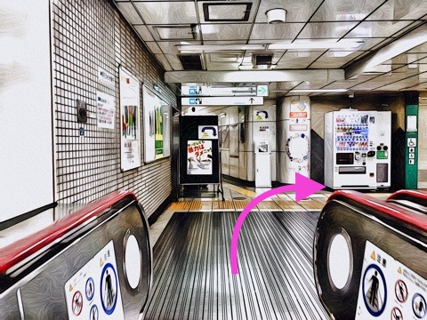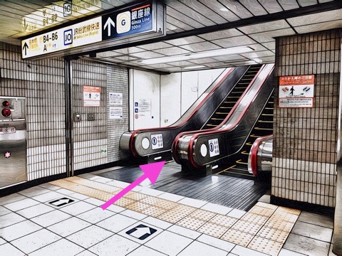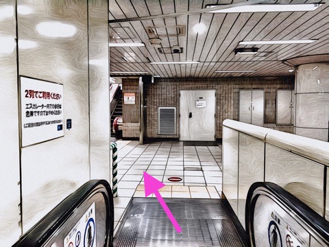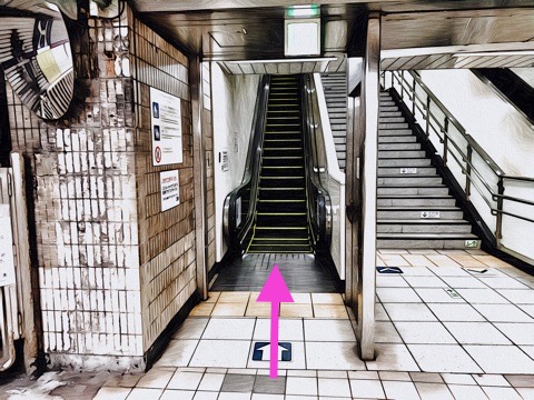 1号車1番扉(先頭から1両目)付近のエスカレーターへ