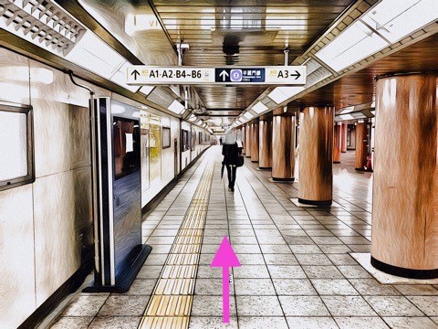 4番線が押上方面行きホーム(1号車1番扉/先頭から1両目)