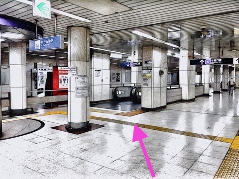 左の1番線が渋谷方面行きホーム(3号車2番扉/先頭から8両目)