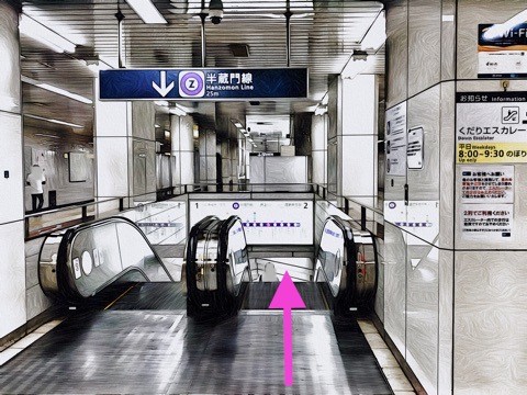 前方のエスカレーターへ