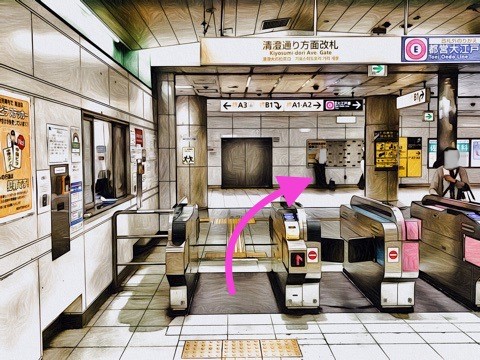 改札を出て右前方へ