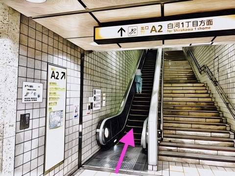 8号車2番扉(先頭から3両目)付近のエスカレーターで改札階へ