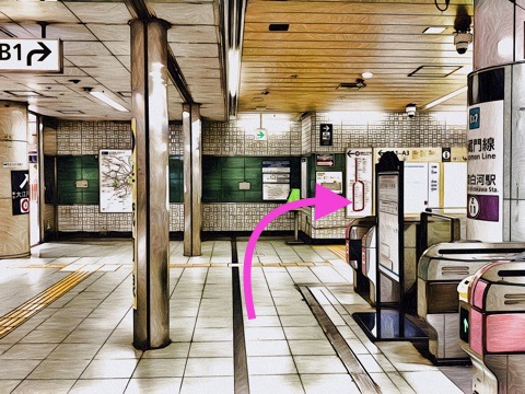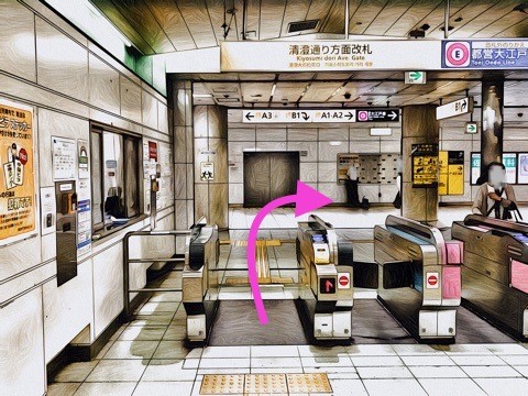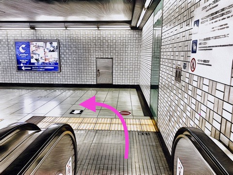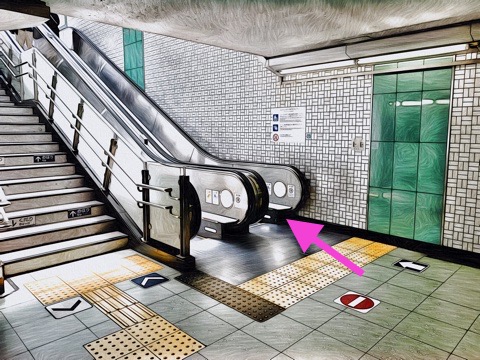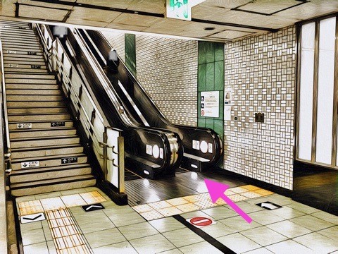 8号車2番扉(先頭から3両目)付近のエスカレーターで改札階へ