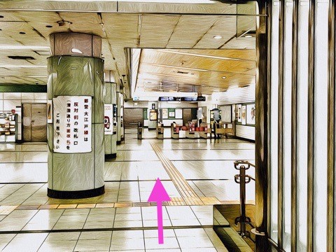 エスカレーターを降り前方の改札へ
