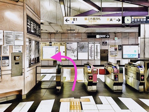 エスカレーターを降り前方の改札へ