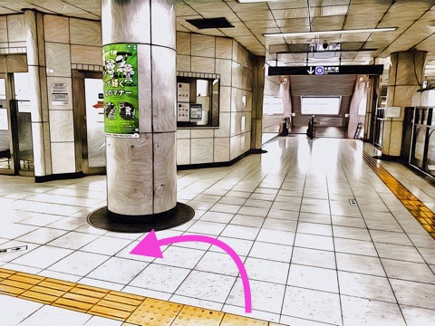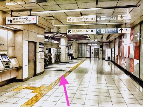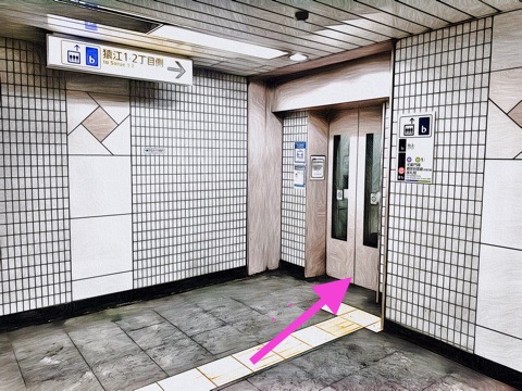 6号車4番扉(先頭から6両目)付近のエレベーターで改札階へ