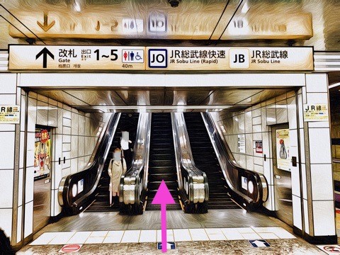 右前方のエスカレーターで地上へ