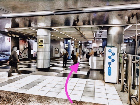 エスカレーターを降り前方の改札へ