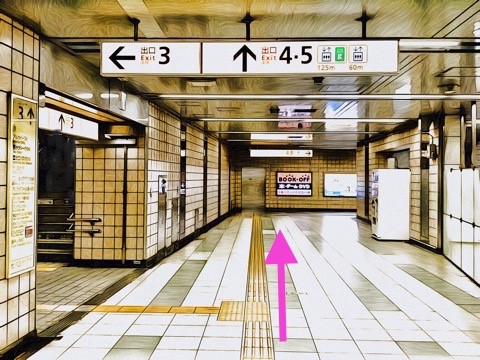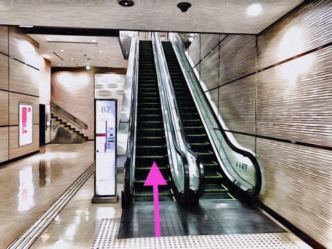 5号車1番扉(先頭から5両目)付近のエスカレーターで改札階へ