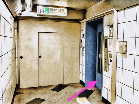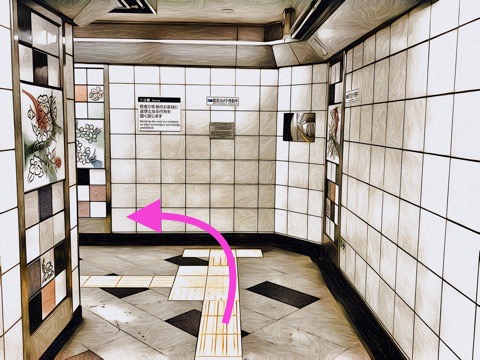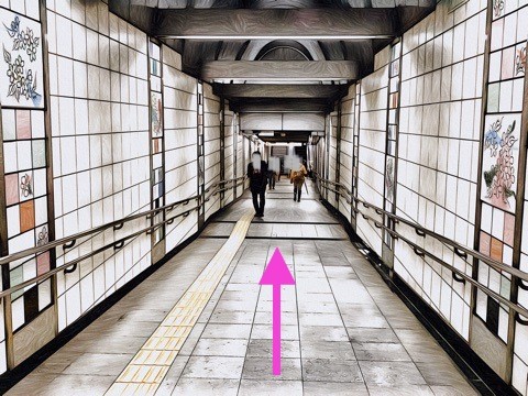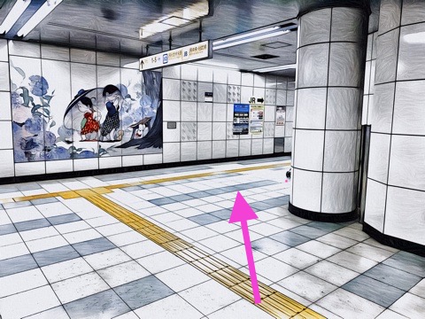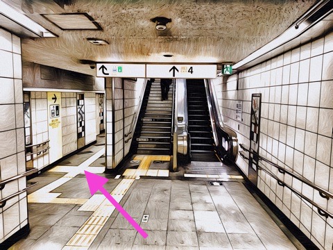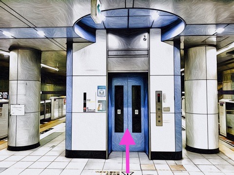 4号車3番扉(先頭から7両目)付近のエレベーターで改札階へ