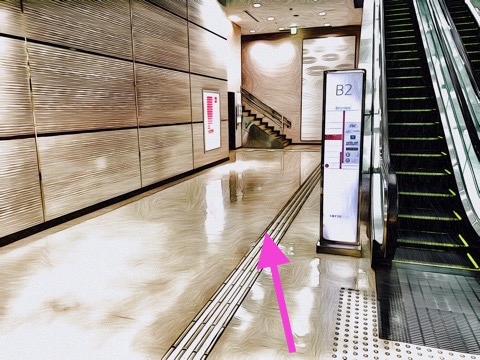 自動ドアを入りエスカレーター左の通路へ