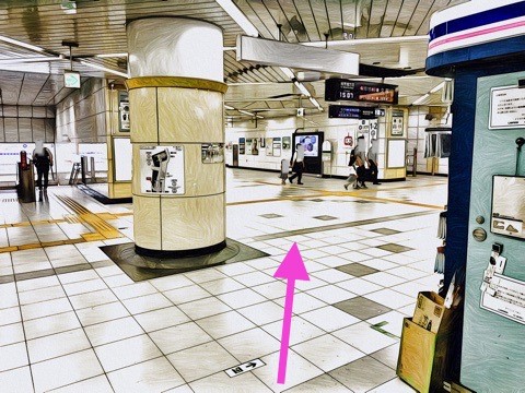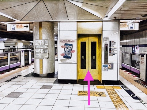 4号車2番扉(先頭から4両目)付近のエレベーターで改札階へ