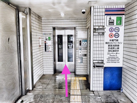 出入口B3のエレベーターへ