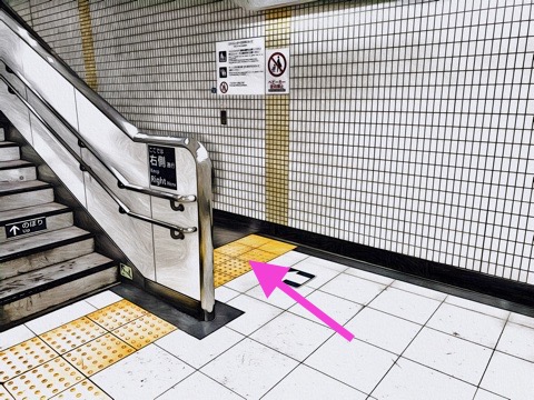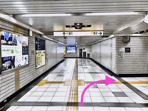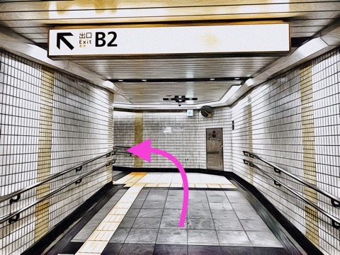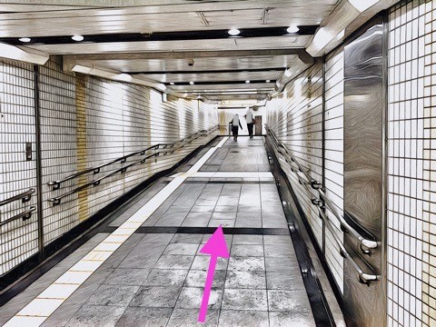 エスカレーターを降り通路に沿って前方へ