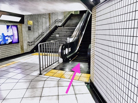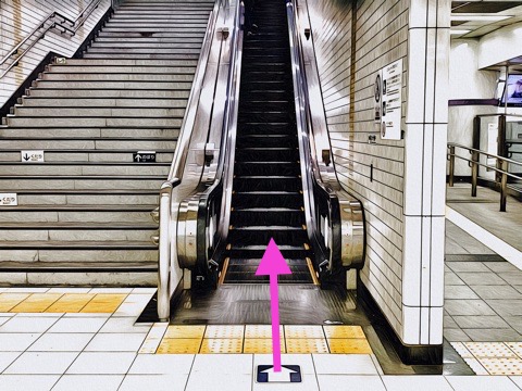 前方のエスカレーターへ