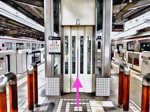 7号車2番扉(先頭から1両目)付近のエレベーターで改札階へ
