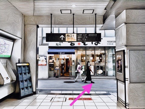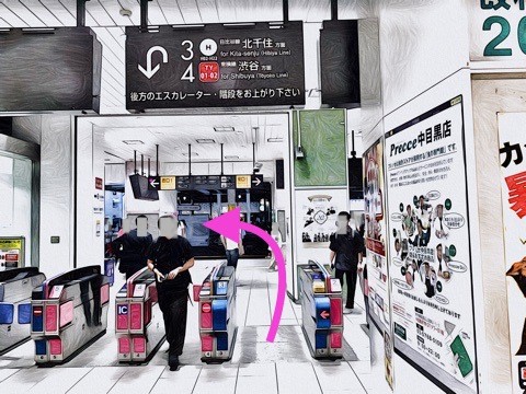 7号車2番扉(先頭から1両目)付近のエレベーターで改札階へ