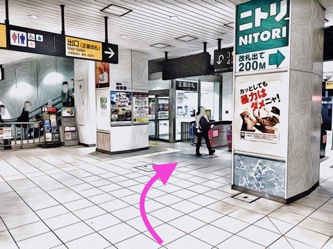 5号車1番扉(先頭から3両目)付近のエスカレーターで改札階へ