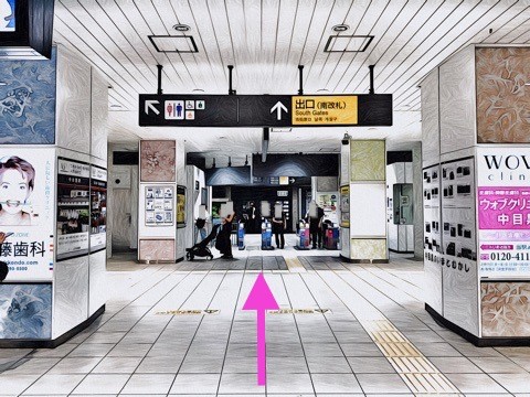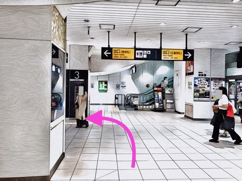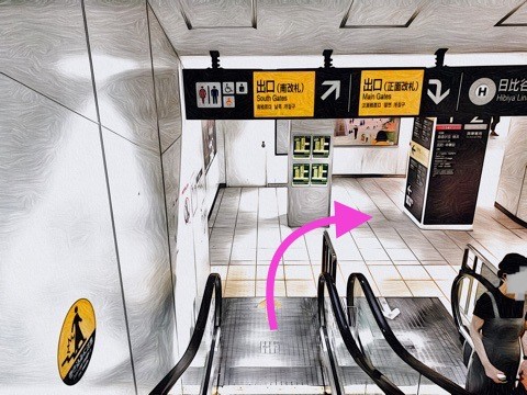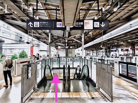 5号車1番扉(先頭から3両目)付近のエスカレーターで改札階へ