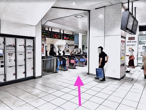 改札を入り右前方へ