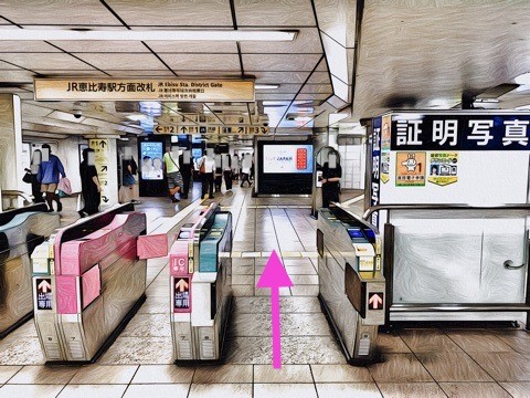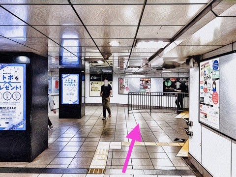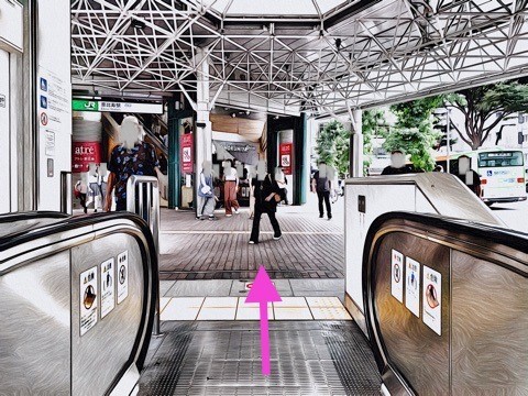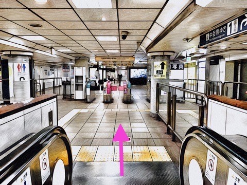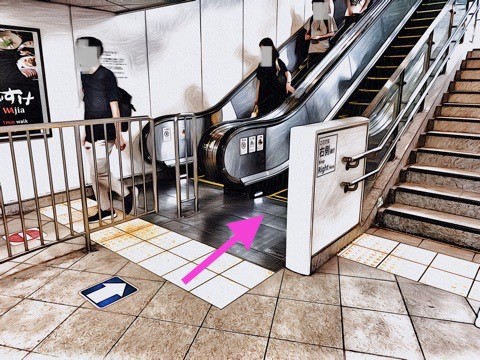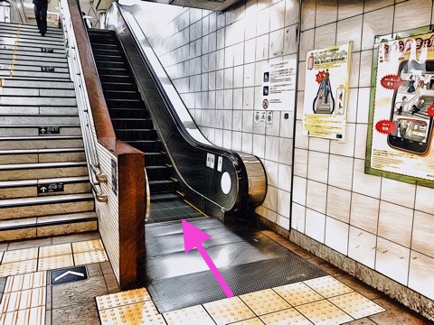 3号車1番扉(先頭から5両目)付近のエスカレーターへ