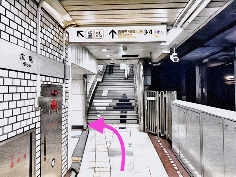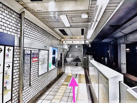 1号車1番扉(先頭から1両目)付近からエスカレーターへ