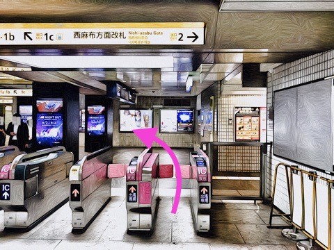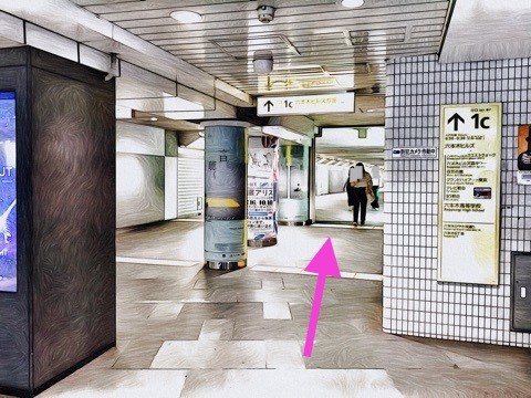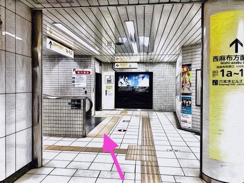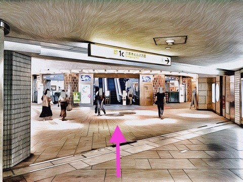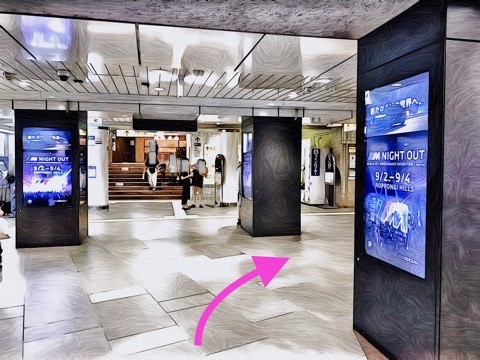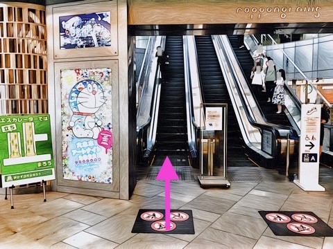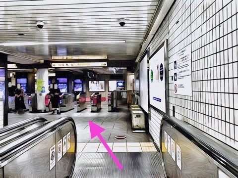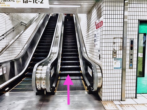 7号車2番扉(先頭から7両目)付近のエスカレーターへ