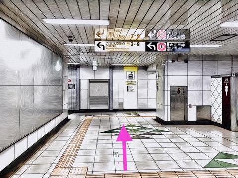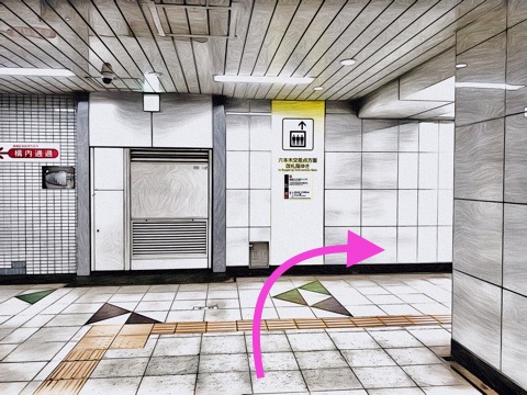 2号車2番扉(先頭から6両目)付近のエレベーターへ