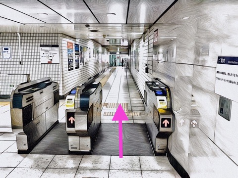 エスカレーターを降り前方の改札へ