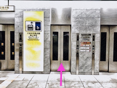 前方のエレベーターへ